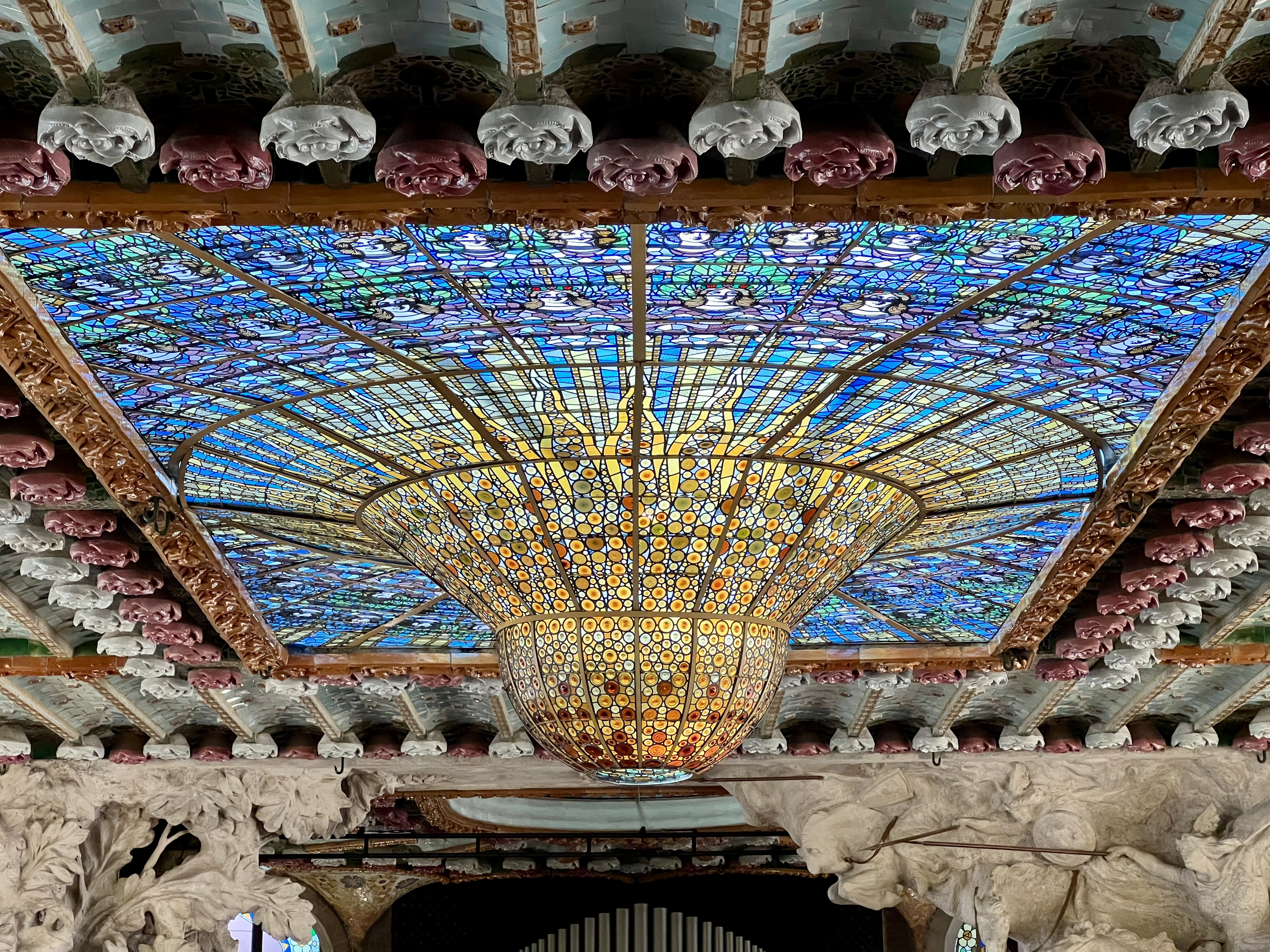 Palau de la Musica is characterized by light. The central stained glass ceiling represents the sun
