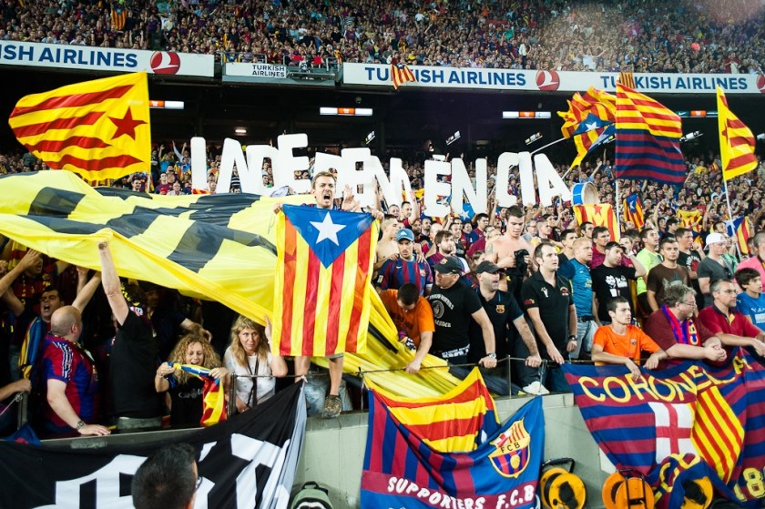 The legend of the origin of the Catalan flag and Barcelona FC jersey were born. Barcelona FC is the futbol team of Barcelona and is integrally tied to Catalan identity. During the reign of Franco, while the language was banned, the stadium of Barcelona, Camp Nou, was one of the only places Catalan could be heard. The supporters sang chants in Catalan.