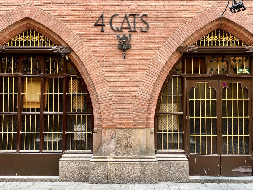 “With such high jinks and the publicity they created, modernisme in Barcelona had the momentum of a popular fashion by 1896, and Casas and Rusinyol decided to give it a base in town. In 1897 they and Romeu rented the ground floor of a Neo-Gothic house just built by Puig i Cadafalch, the Casa Martí, and in it they proposed to put a cerveseria, or “beer hall.” They called it Els Quatre Gats—The Four Cats. In hindsight, The Four Cats has acquired a nostalgic aura as one of the great intellectual meeting places of fin de siècle Europe. This, like all such reputations, is exaggerated, but the place certainly played a role in Barcelona’s artistic life during its six short years (1897–1903). This was due not to the food, which was mediocre and often stingy (according to Josep Pla, not servings but “an exhibition of painted plates”), but rather to the drawing power of its core clientele. The name of the place meant, in Catalan slang, “just a few people”; the “four cats” were Romeu, Casas, Utrillo, and Rusinyol. The place, Rusinyol wrote, would be something for everyone—“an inn for the disillusioned … a warm nook for the homesick … a Gothic beer-hall for lovers of the north, and an Andalusian patio for lovers of the South … a place to cure the ills of our century.” Casas, Rusinyol, Utrillo, and their friends created their own club and, in the tradition of French artists’ estaminets with rude proprietors, got an oddity to run it.” Robert Hughes