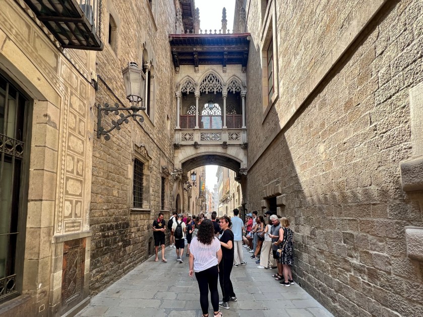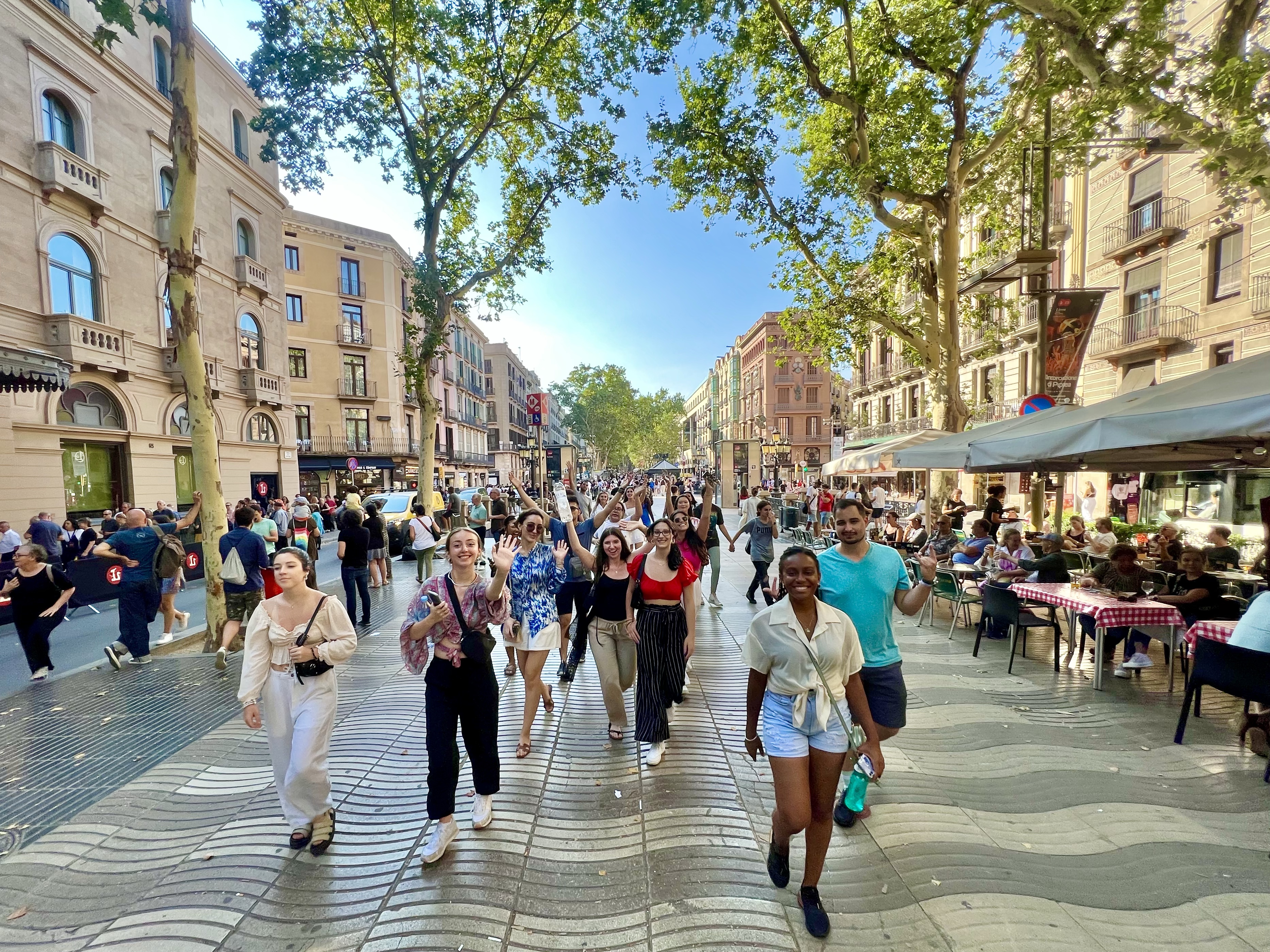 “The word “Rambla” comes from the Arabic word “Ramla”, meaning “sandy river bed”. When it rained, water flowed down from the mountains and ran along the river bed. After the hospital had been built, the river bed was turned into a street known as La Rambla; it was Barcelona’s first and only major wide boulevard. At the time, Barcelona only had narrow streets that kept the houses cool during the summer months. This made La Rambla the best street in Barcelona for taking a walk. It also gave the well-to-do the chance to show off their wealth, as their exclusive attire and jewellery didn’t catch anyone’s attention in the dark, narrow streets. The word “Rambla” was even turned into an expression “ramblear” which means “to people-watch”. You can still “ramblear” on Barcelona’s Rambla. So don’t miss the opportunity to do so.” https://www.barcelonaturisme.com/wv3/en/enjoy/5/historic-streets.html