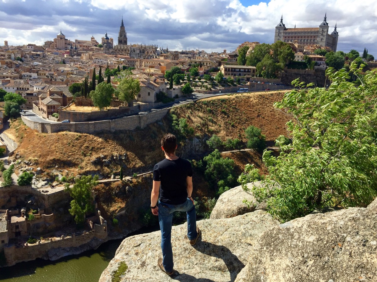 “The rain and morning fog had left the cobblestones of the old bridge too slippery to jog on. I had to get to the other side of the Tagus River to get a real view. I turned and looked. The city itself sat on the hill like a medieval Oz, the river wrapped around it like a moat. There were two layers of castle walls, festooned with gargoyles, eagles and crests. On top of the bluff was the Alcázar, which looked out over the city’s patchwork of Manchegan red clay tile roofs and the spires and belltowers of churches. The bells started to peal, eventually crescendoing to an explosion of noise that sounded like the finale of a fireworks show. It was still very early in the morning. Holy Toledo, I thought.” Geoffrey Gray, New York Times https://www.nytimes.com/2012/12/23/travel/in-toledo-layers-of-spanish-history.html