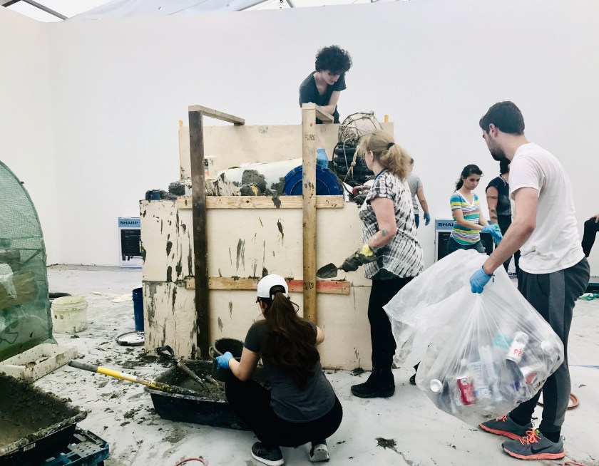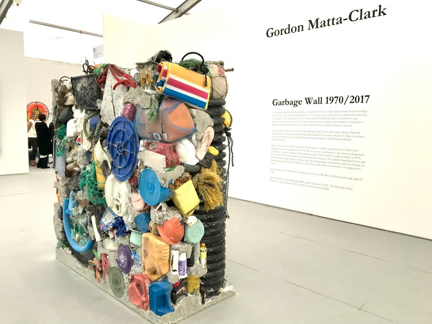 At the 2017 UNTITLED Art Fair, students of the FIU Honors College assisted in a recreation of Gordon Matta-Clark’s Garbage Wall, presented by the Estate of Gordon Matta-Clark. The collaboration was coordinated by Jane Crawford, Jessamyn Fiore, Omar Lopez- Chahoud, and John William Bailly.
