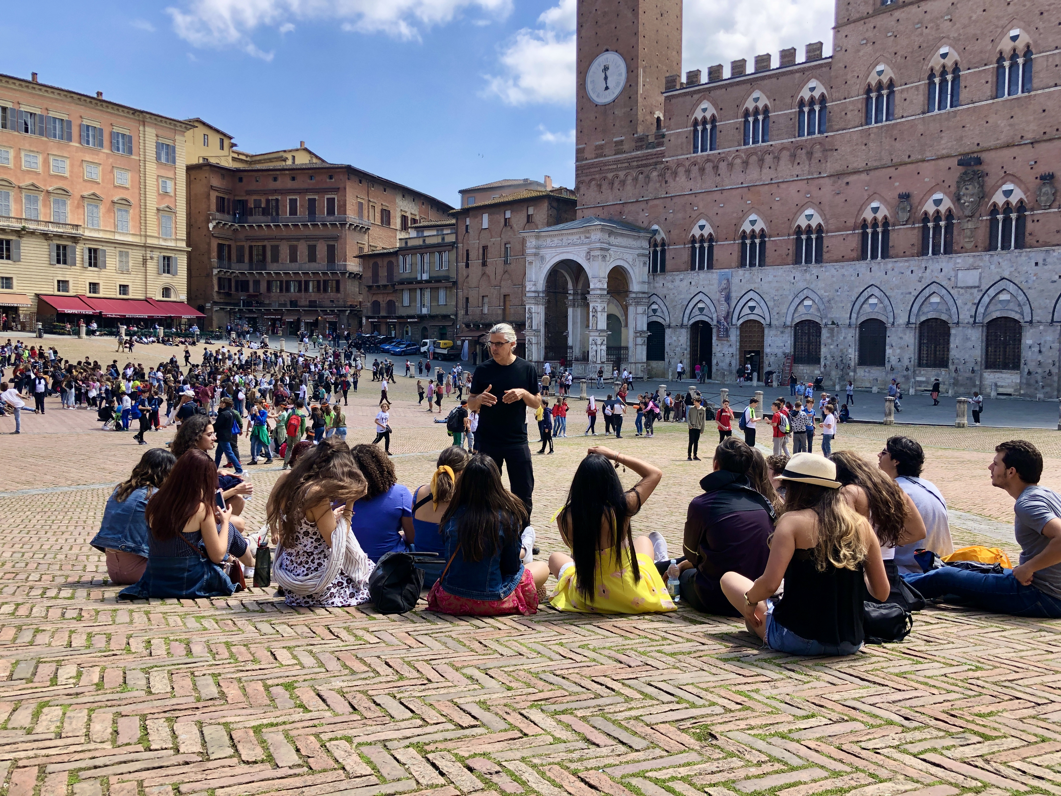 The group takes a day trip by train to Siena. The class visits three institutions: Duomo, Torre del Mangia, Museo dell’Opera del Duomo. Professor Bailly leads a walking tour of Siena.