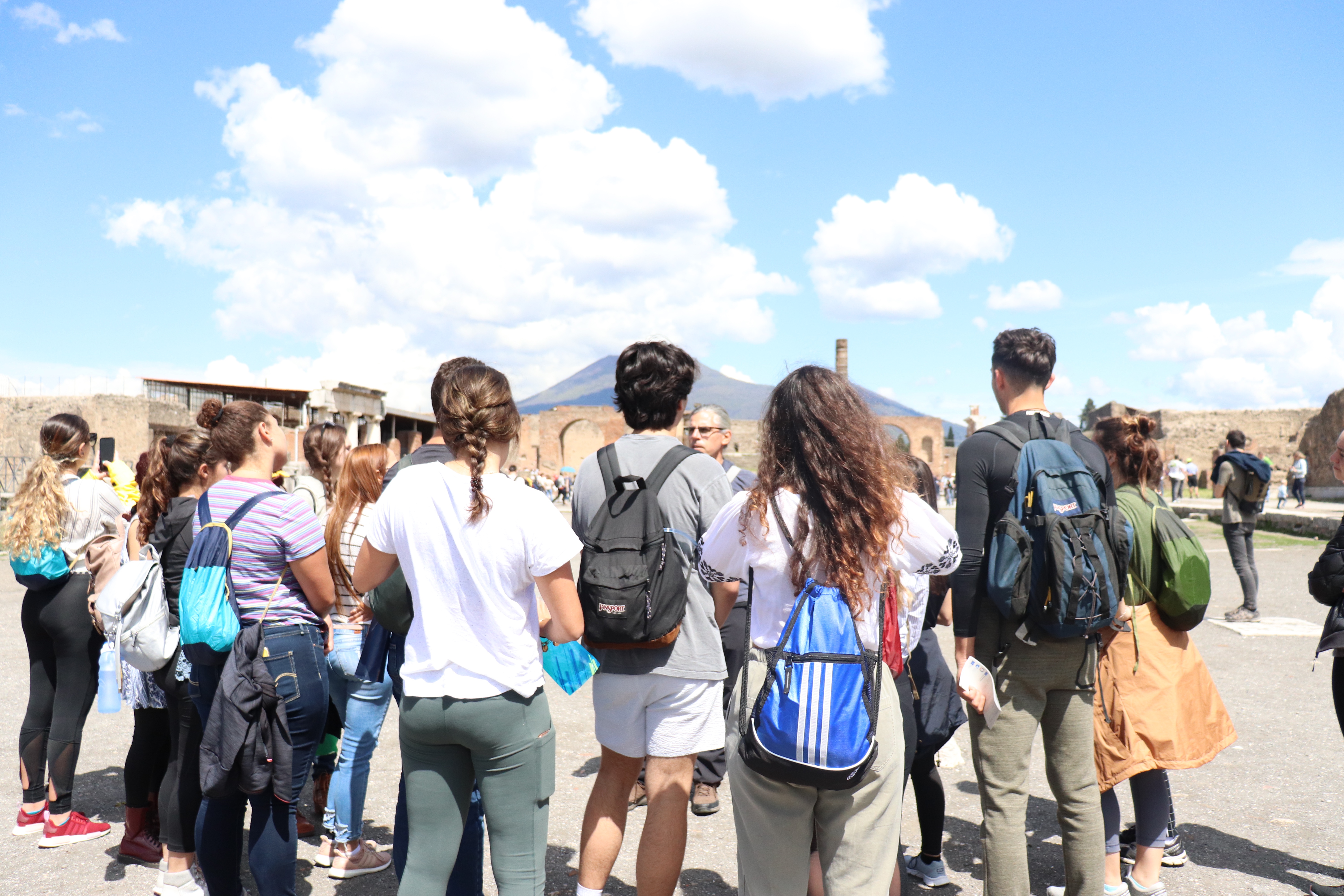 The group takes a day trip by private bus to Pompeii. The class spends the day at the Archeological Park.