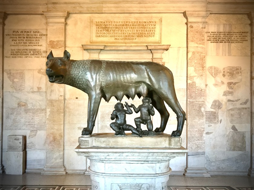 The foundation of Roma is intertwined in myth and history. According to several ancient sources, the most definitive of which is Plutarch, the twins Romulus and Remus were raised by a she-wolf. After long tribulations involving sex with gods, living in a cave, drinking she-wolf milk, thievery, battle, rape, vultures, Romulus, and eventually fratricide, Romulus founded Roma on 21 April 753 BCE.
