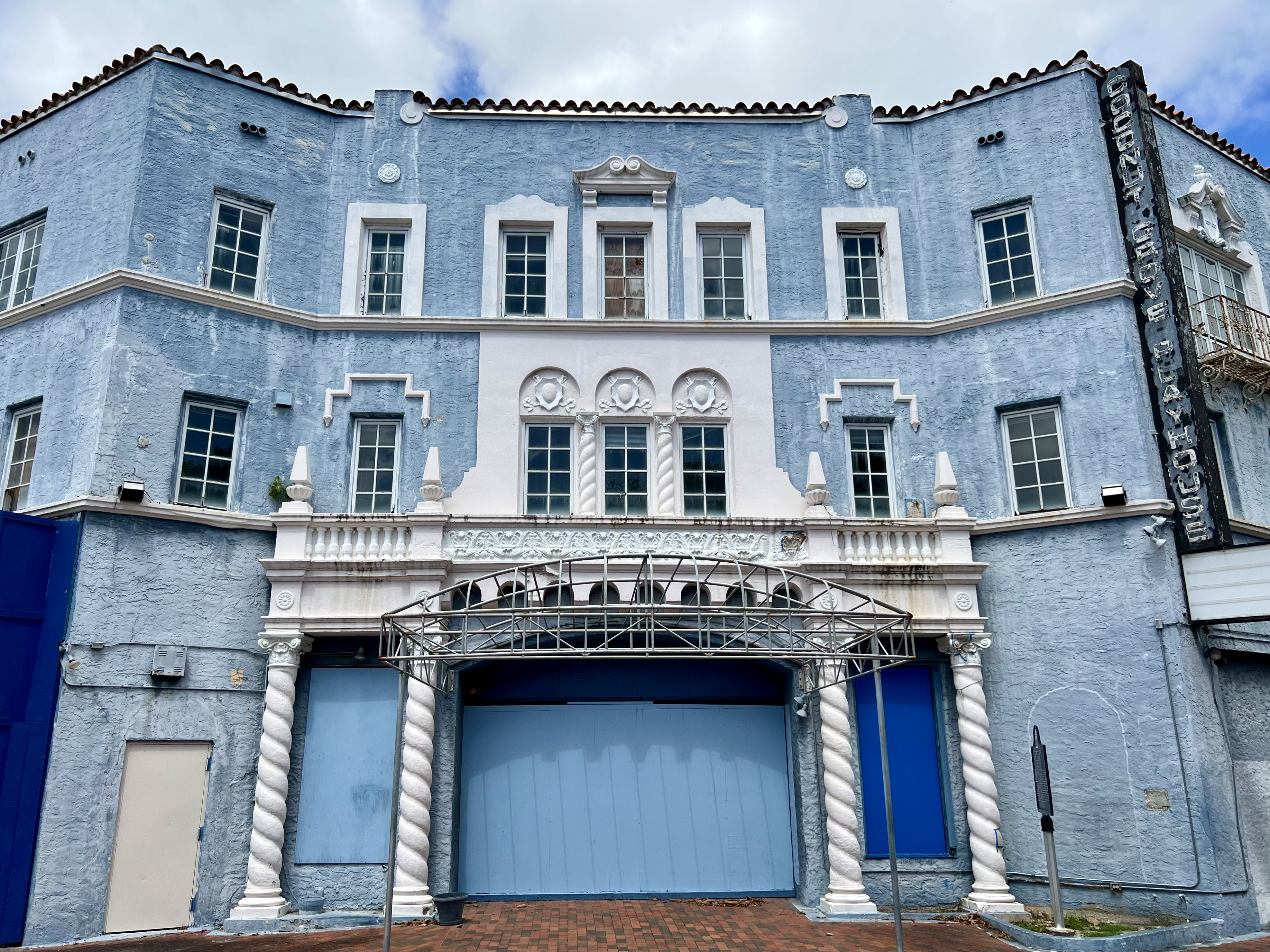“This theater is one of the few structures in downtown Coconut Grove that typifies the flamboyant era of the 1920s. Envisioned by Miami entrepreneurs Irving Thomas and Fin Pierce, The Grove was a luxurious movie theater designed in the Spanish Rococo style by noted architect Richard Kiehnel, who also designed the Miami Senior High School, the Scottish Rite Temple, and many South Florida homes. The Grove was the most elaborate theater with the largest capacity in Miami. Before its opening in 1926, Thomas sold the theater to the movie studio Paramount Enterprises, Inc., believing that the studio could bring in larger attractions. As one of Paramount’s 11 theaters in Southeast Florida, it was equipped with the latest model Wurlitzer pipe organ and was one of the few air conditioned buildings in the area. In addition, the building served multiple purposes with storefronts on the ground floor, offices on the second, and apartments on the third. The theater enjoyed a brief period of success before it closed during the Great Depression in the 1930s. During World War II, the theater was used as a training school for U.S. Army Air Corps navigators. Following the war, the building was closed until 1955 when it was purchased for $200,000 by George Engle, who decided to transform it into a performing arts center. Engle hired prominent Modernist architect Alfred Browning Parker to redesign the theater. The remodeled theater opened on June 3, 1956, as the Coconut Grove Playhouse and was Miami’s first live theater. The opening was headlined by the U.S. premiere of Samuel Beckett’s masterpiece “Waiting for Godot.” After changing ownership multiple times, the theater was purchased by the State of Florida in 1980. Despite its turbulent history, the Coconut Grove Playhouse evolved into one of the most important regional theaters in the country and remains a beloved venue for the theatrical community in Miami.” Marker for A Florida Heritage Site, Sponsored by Coconut Grove Civic Club and the Florida Department of State