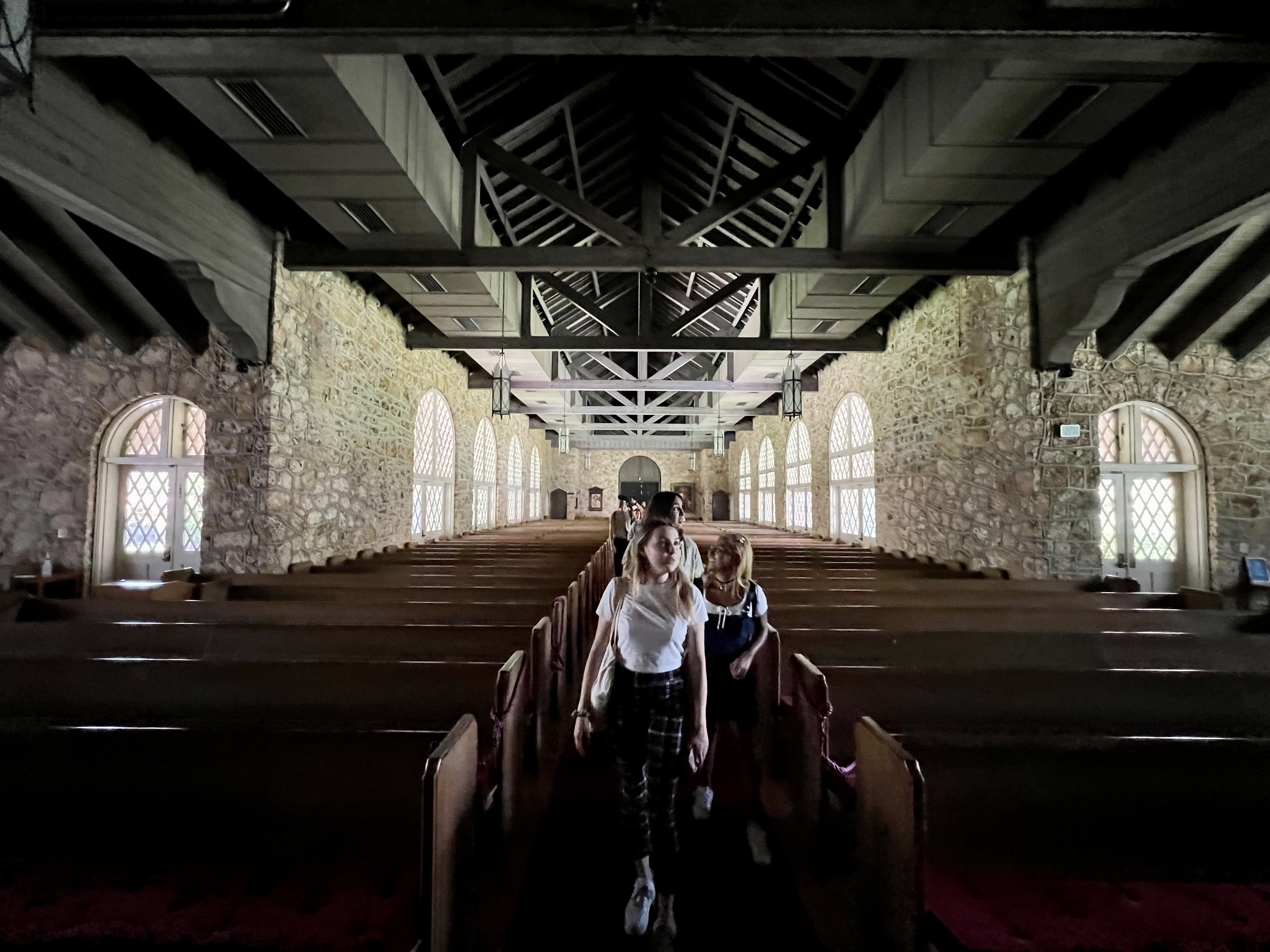 The original part of the church was started in June 1916 and completed in August 1917. Clinton McKenzie was the architect who drew the plans, taken from the design of an old City Mission Church in Mexico.