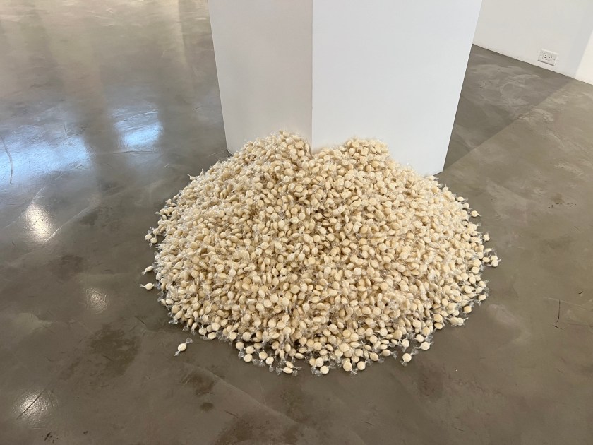 This work is comprised of the favorite candy of Gonzalez-Torres’s father and, at installation, 175 lbs, the weight of his father. Visitors are free to take a piece of the candy and consume it.