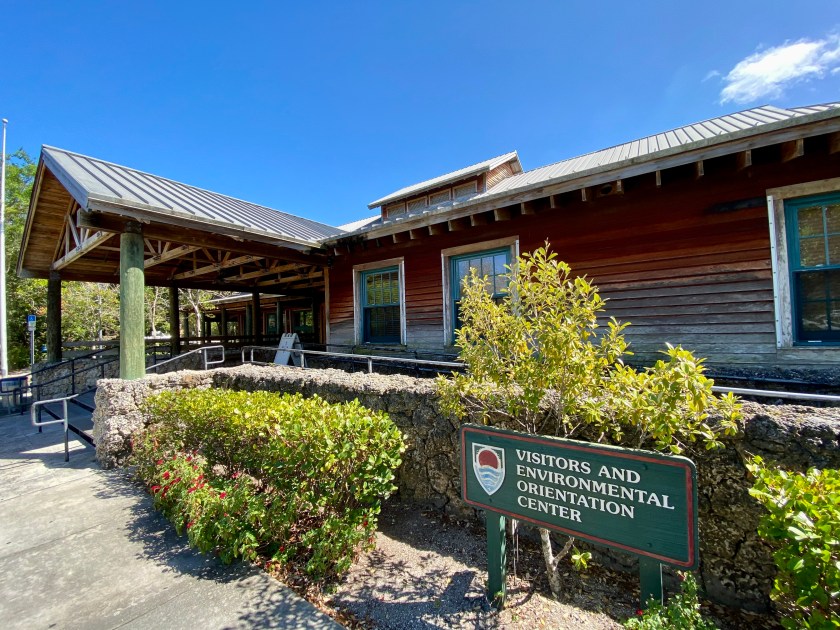 The Visitors Center and the Main Entrance are different! The Visitors Center provides information, free parking, free restrooms, as well as a classroom and a theater. Many events are held in the theater. The Main Entrance to the Deering Estate, however, is a 3 minute walk north on Southwest 72nd Avenue to the intersection of 72 with Southwest 167th Street.