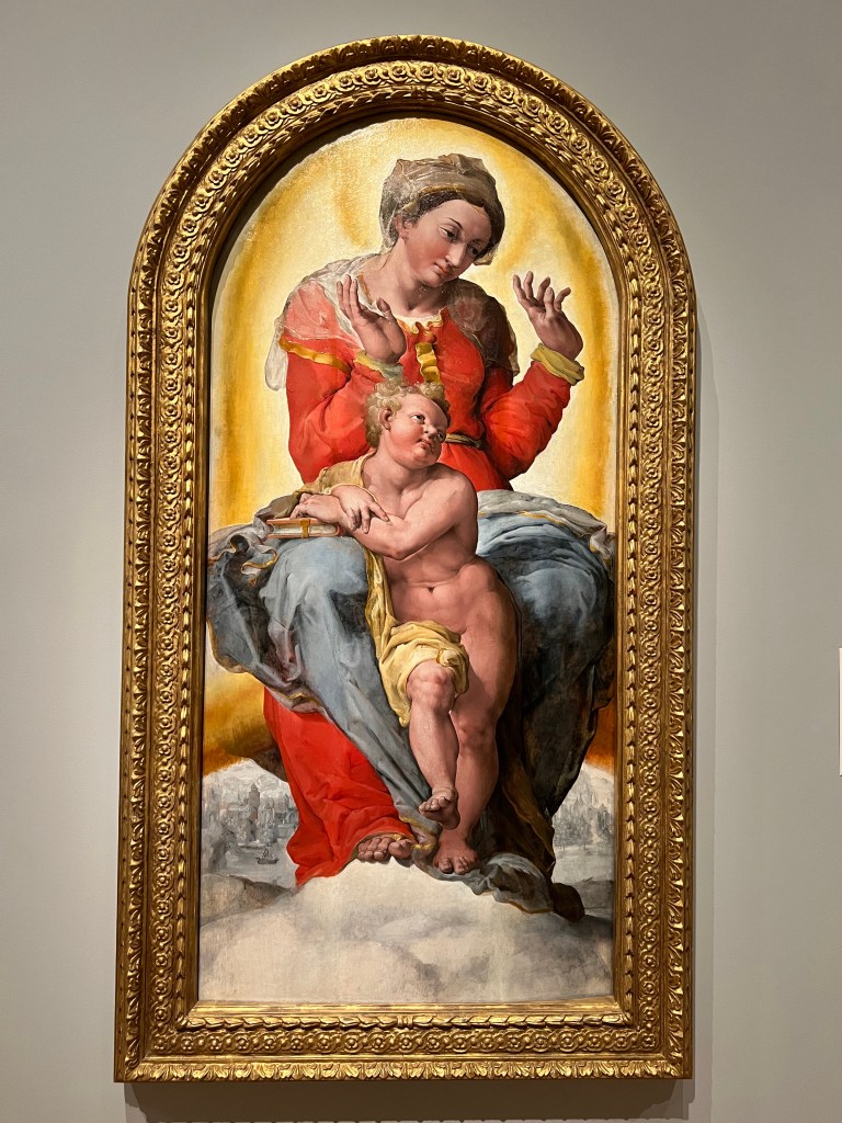 Giovanni Bezzi, or Nosadella, as he was known, was a Bolognese pupil of Pellegrino Tibaldi, a Mannerist or late Renaissance painter taught by Perino del Vaga, who was Raphael’s second most important pupil in Rome. One of the salient features of the work is the contrast between the extraordinarily beautiful rose of the Virgin’s robe and the pale blue of the shawl across her knees. These contrasting pale colors are a bit of a commonplace in Mannerism, but are always notable when used exceedingly well, as they are here. You’ll also notice the Christ Child is not the perfect toddler of Florentine painters – he’s a little fleshier and sturdier, a little homelier. The Virgin’s gesture also seems a little demonstrative, more suitable maybe to a more dramatic subject. It seems as if what is lost in the ideal is, however, gained in expressiveness. Something of the tradeoff between the two is suggested by Carlo Malvasia, the great 17th century historian of Bolognese painting, who wrote “those few works by him [that is, Nosadella] that are known–and they are mostly frescos–are distinguished by their good color …and are full of erudition. If they are not as perfect and studied [as those of Tibaldi, his master], they are perhaps more powerful, singular, and resolute.” Carlo Cesare Malvasia, Felsina pittrice. Vite de’ pittori bolognesi, 1678. Norton Museum of Art