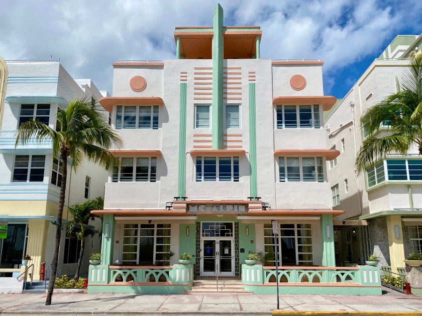 South Beach’s Art Deco neighborhood is unique in the world. The buildings aim to reflect the early twentieth century fascination with machines and their sleek designs. The components are linear—often resembling an ocean liner, a spaceship, or an…appliance, like a toaster or refrigerator!