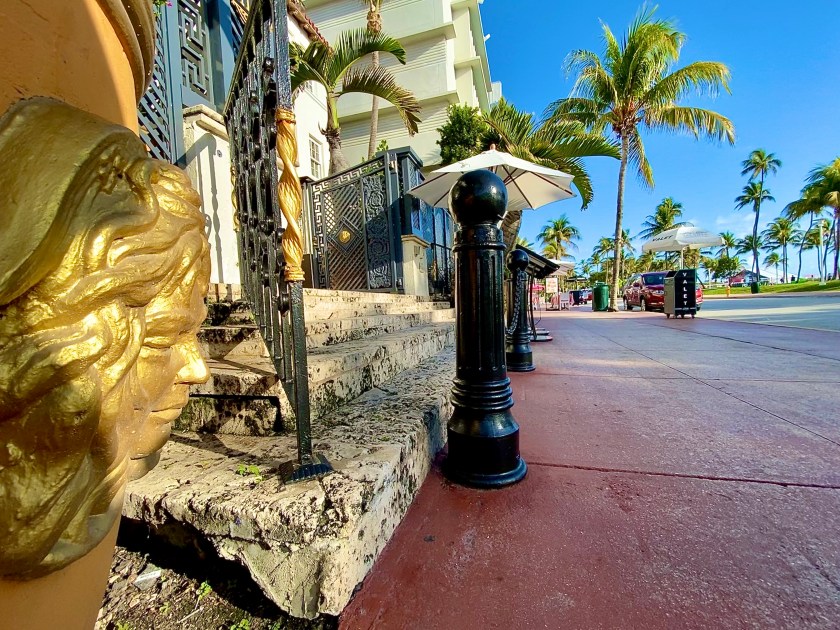 Villa Casa Casuarina is not an Art Deco building, it is a Mediterranean Revival building. So why is it highlighted here? It’s actually the one somber part of this walk. Gianni Versace, the celebrated Italian fashion designer and champion of SoBe, called this villa his home. In the 1990s,Versace helped redefine South Beach’s culture as one that was open and hedonistic and contributed to its international recognition. On 15 July 1997, however, after visiting his favorite News Cafe, Versace was gunned down on these very steps by a deranged fugitive